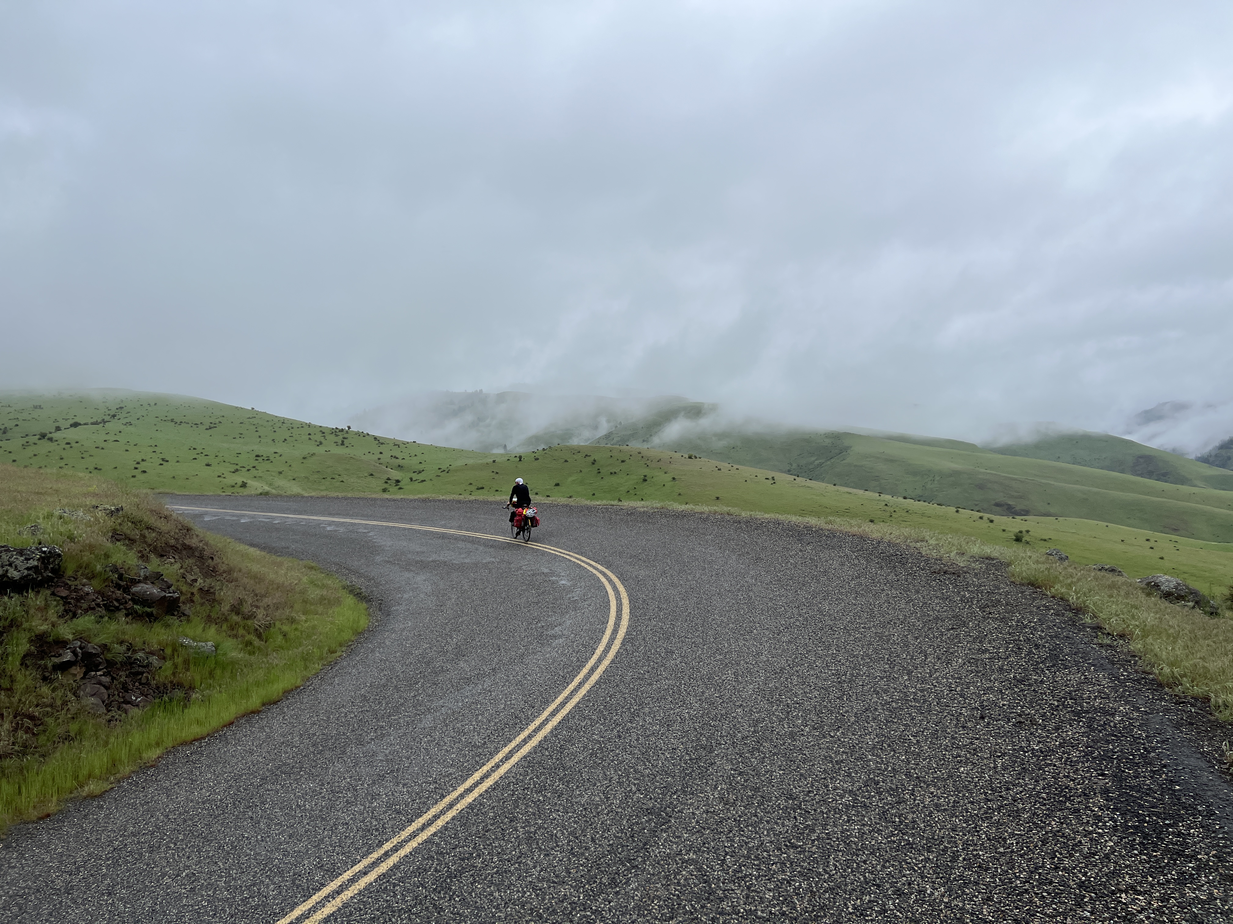 Well, day 16 of the long ride is in the bag. We are in Grangeville, Idaho. It was another long day of riding in the rain. All day today and most of the day yesterday it was raining and cold. and really all day today were in the rain and cold. At one point when we were at our wettest, it was 36 degrees. If you have been on a bike riding downhill, 36 degrees doesn’t feel good no matter how many clothes you have on, and I had most of my clothes on.